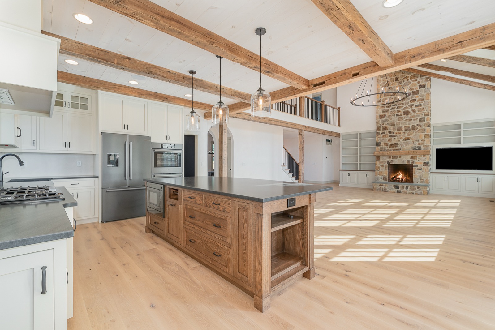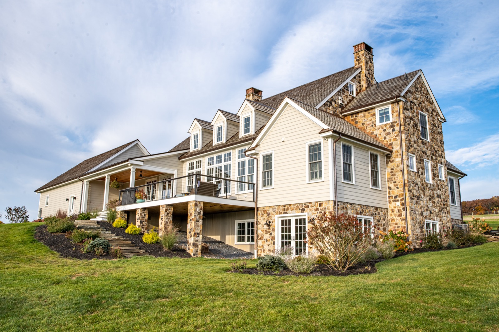 This home was designed from the ground up to include all the amenities of a new home with the charm of an historic colonial. The incorporation of natural stone and reclaimed timbers help contribute to the timeless character.